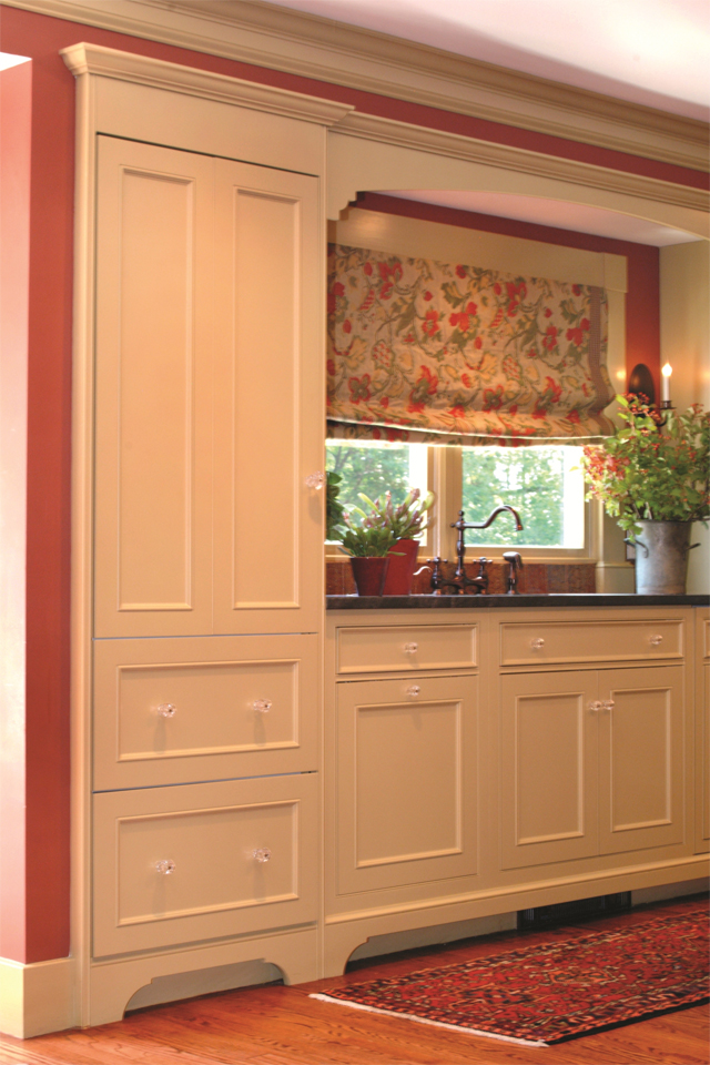 A paneled Subzero Refrigerator is built into the wall to look like a hutch.